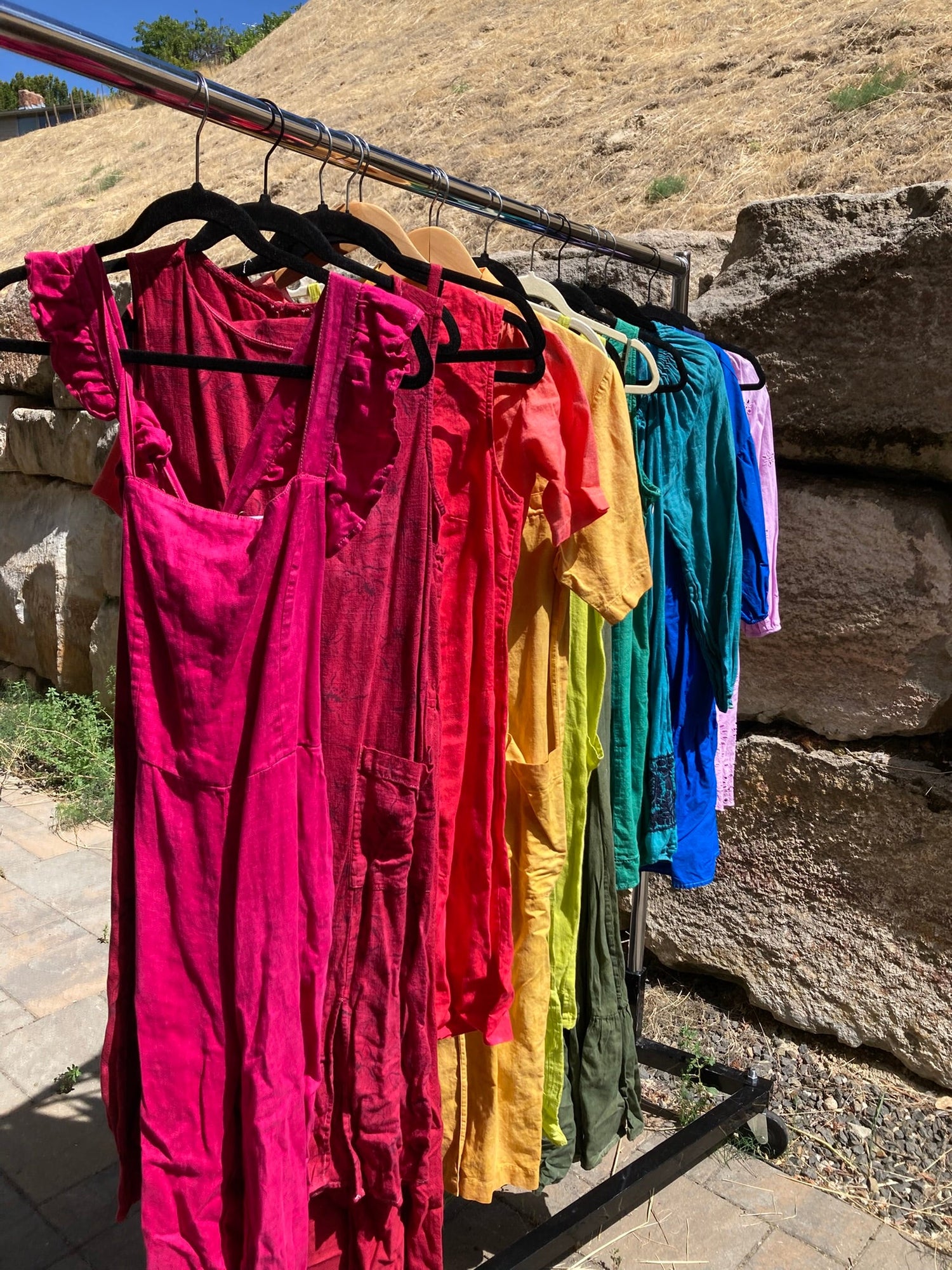 This collection of dresses has been thrifted, mended, altered and hand dyed...